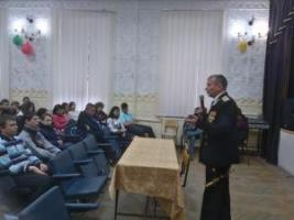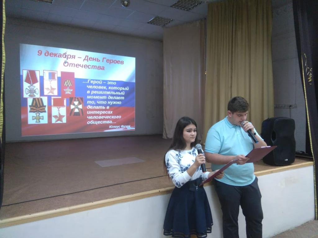 06.12.2018 г. в актовом зале прошел тематический классный час: «День героев Отечества», в котором приняли участие студенты и преподаватели колледжа. Ребята просмотрели фильм «Герои России, кто они?». На встречу с ними был приглашен преподаватель нашего колледжа Ищенко М.Н., участник боевых действий, выполнявший служебно-боевые задачи на Дальнем Востоке и Северном Кавказе, который рассказал о героях современной России и подвигах своих боевых товарищей.