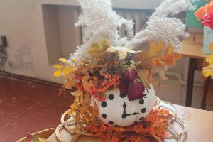 - 4 место - «Покровские розы» в замечательной вазе из тыквы - экспонат, выполненный группой ТК-11.