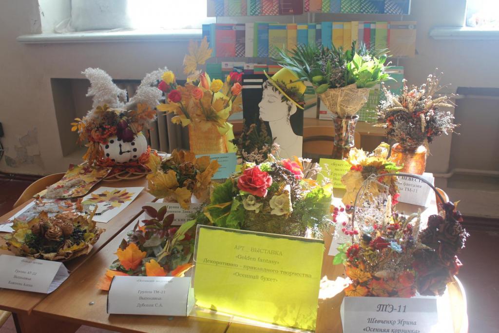 Сегодня подвели итоги арт-выставки «Golden Fantasy».  В зале библиотеке расположились разнообразные осенние фантазии студентов: букеты, водопады, корзины, оригинальные ежики... Каждая работа была интересна, креативна, и самое главное - она существует в единственном экземпляре!