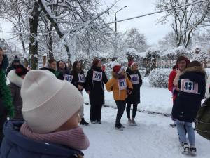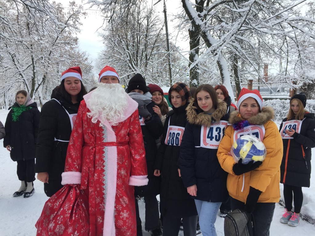Ребята под новогоднюю музыку пробежали по аллее Александровского парка, завершив забег новогодним хороводом со Снегурочкой и Дедом Морозом – также участниками забега.