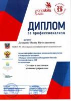 Демиров Иван занял по сумме набранных баллов 4 позицию в списке результатов. За высокий профессионализм, показанный в ходе участия в Региональном чемпионате Иван был отмечен дипломом и награжден медальоном.