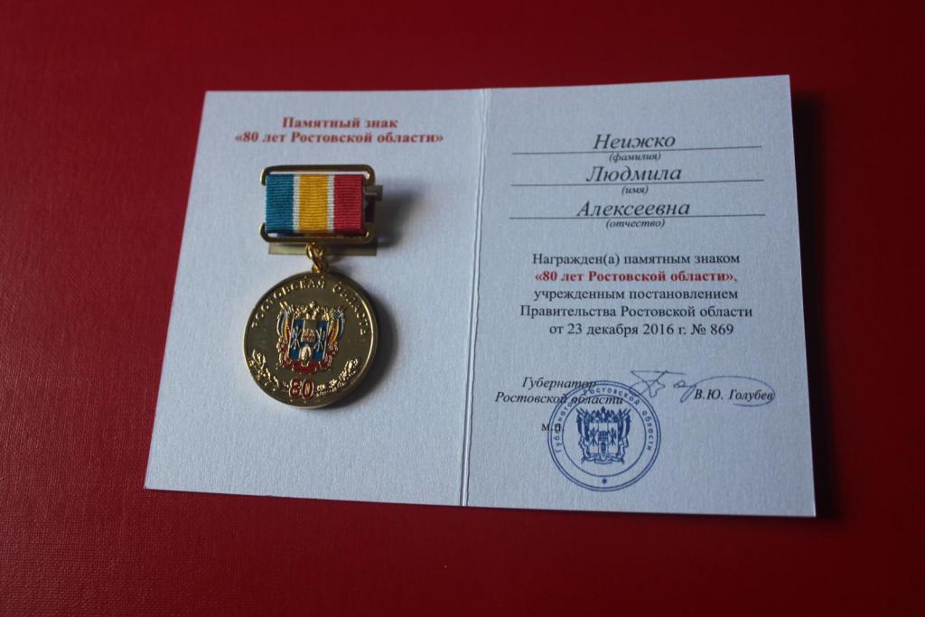 24 июня 2017 года на городской площади состоялось торжественное награждение педагогов города за многолетний плодотворный труд в области воспитания будущих специалистов и в честь 80-летия Ростовской области. В числе награжденных была педагог нашего колледжа, заслуженный учитель РФ, Неижк о Людмила Алексеевна. Администрация колледжа присоединяется к поздравлениям.
