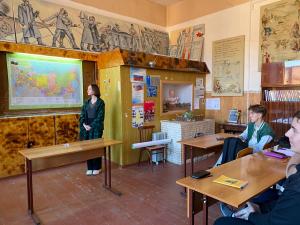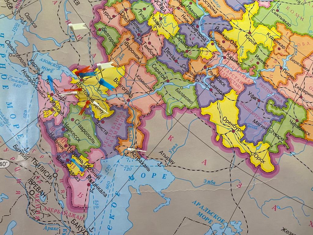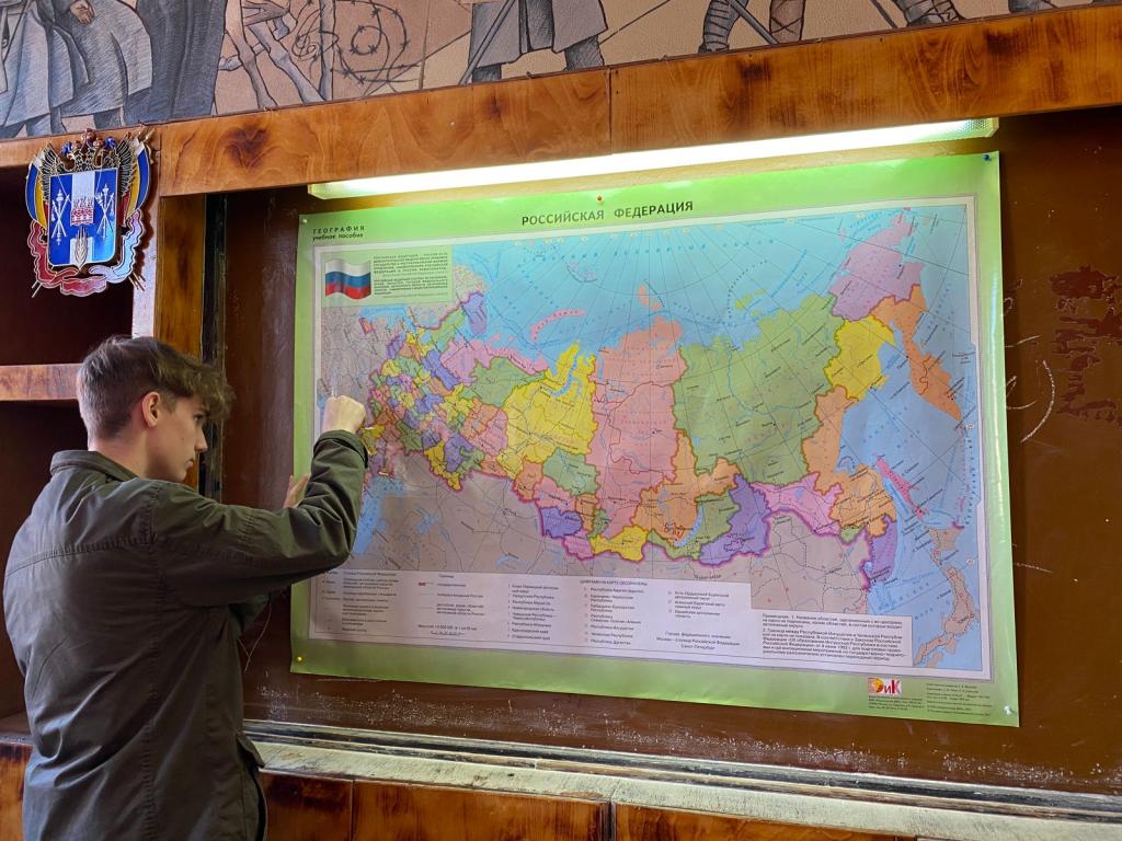 Анастасия Петровна рассказала студентам о культурном, этническом, языковом и религиозном многообразии нашего государства. После чего всем ребятам было предложено оставить «след на карте», каждый поставил флажок на том месте, откуда родом. География оказалась очень обширной.