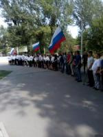 Митинг завершился минутой молчания в память о погибших во время террористического акта в школе №1 г. Беслана 3 сентября 2004 года.