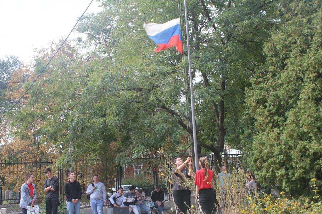 С приветственным и напутственным словом, открыл мероприятие директор колледжа Сергей Евгеньевич Федоров, пожелав всем командам удачи на соревнованиях. После чего под гимн РФ был поднят флаг.