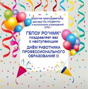 В этот предпраздничный день желаем всем студентам профессиональных образовательных организаций успехов в овладении секретами будущей профессии, преподавателям и мастерам производственного обучения – новых свершений в нелегком, но благородном труде, всем – добра и благополучия!