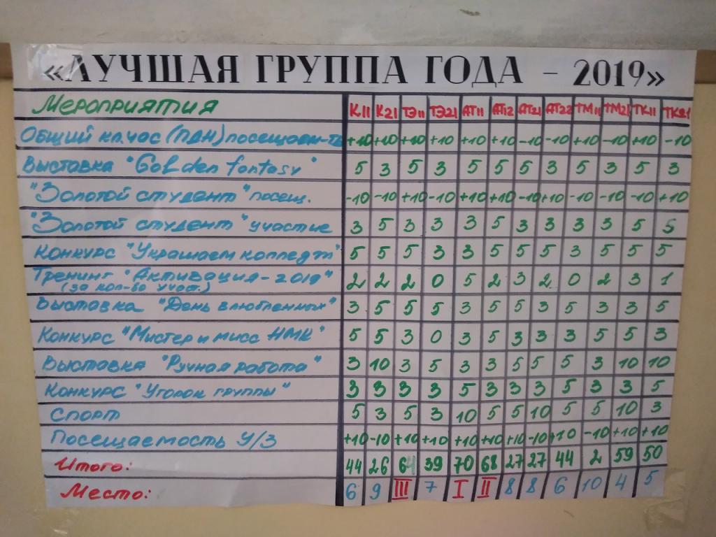 На церемонии подвели итоги конкурса «Лучшая группа года». В этом году лучшей стала группа АТ-11 (70 б.). Куратору группы Маркиной Александре Сергеевне, администрация колледжа вручила благодарственное письмо.