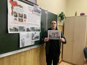 Студенты группы Кононенко В., Чупринова В. и Сафаров Т., выступили с докладам. Филимонова И. изобразила тяжелое время на своих рисунках.