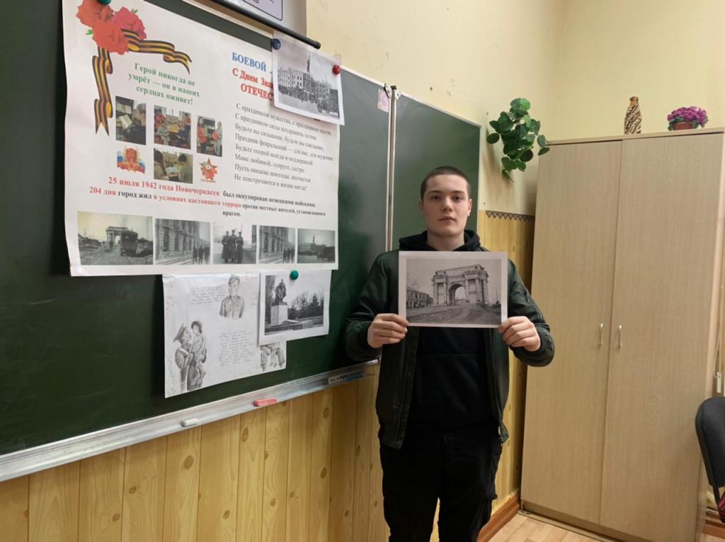 В группе К-21, прошёл классный час посвящённый освобождению г. Новочеркасска от немецко- фашистских захватчиков. Новочеркасск был в немецкой оккупации 206 дней — с 22 июля 1942 года. За это время немцы зверски замучили и убили 1070 новочеркассцев, а 1675 юношей и девушек угнали насильно в неволю в Германию.