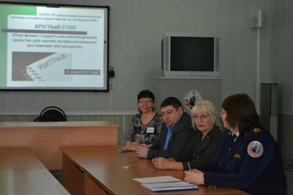 5 апреля 2017 г. в Шахтинском региональном колледже топлива и энергетики им. ак. Степанова П.И. в рамках проведения регионального этапа Всероссийской олимпиады профессионального мастерства обучающихся по специальности 13.02.11 Техническая эксплуатация и обслуживание электрического и электромеханического оборудования (по отраслям) состоялось заседание круглого стола «Портфолио студента как инновационное средство для оценки профессиональных достижений обучающихся».