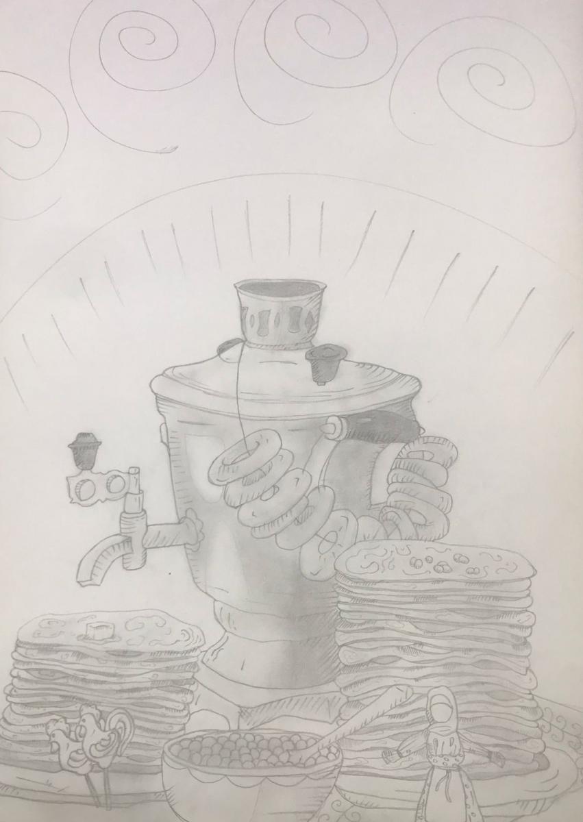 Студент группы АТ-41 Адонин Юрий, поздравляет всех с началом Масленой недели, символичным рисунком и желает сытной и щедрой Масленицы!