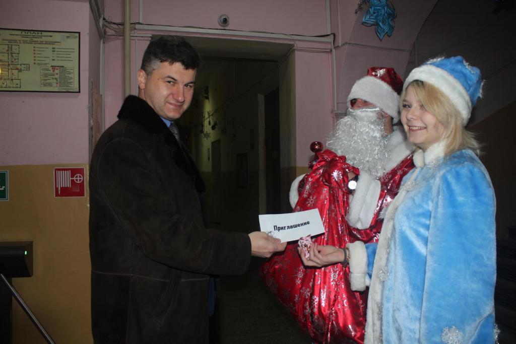 В этот день студентов и преподавателей встречали Дед Мороз и Снегурочка. Дарили конфеты, поздравляли с наступающим Новым годом.