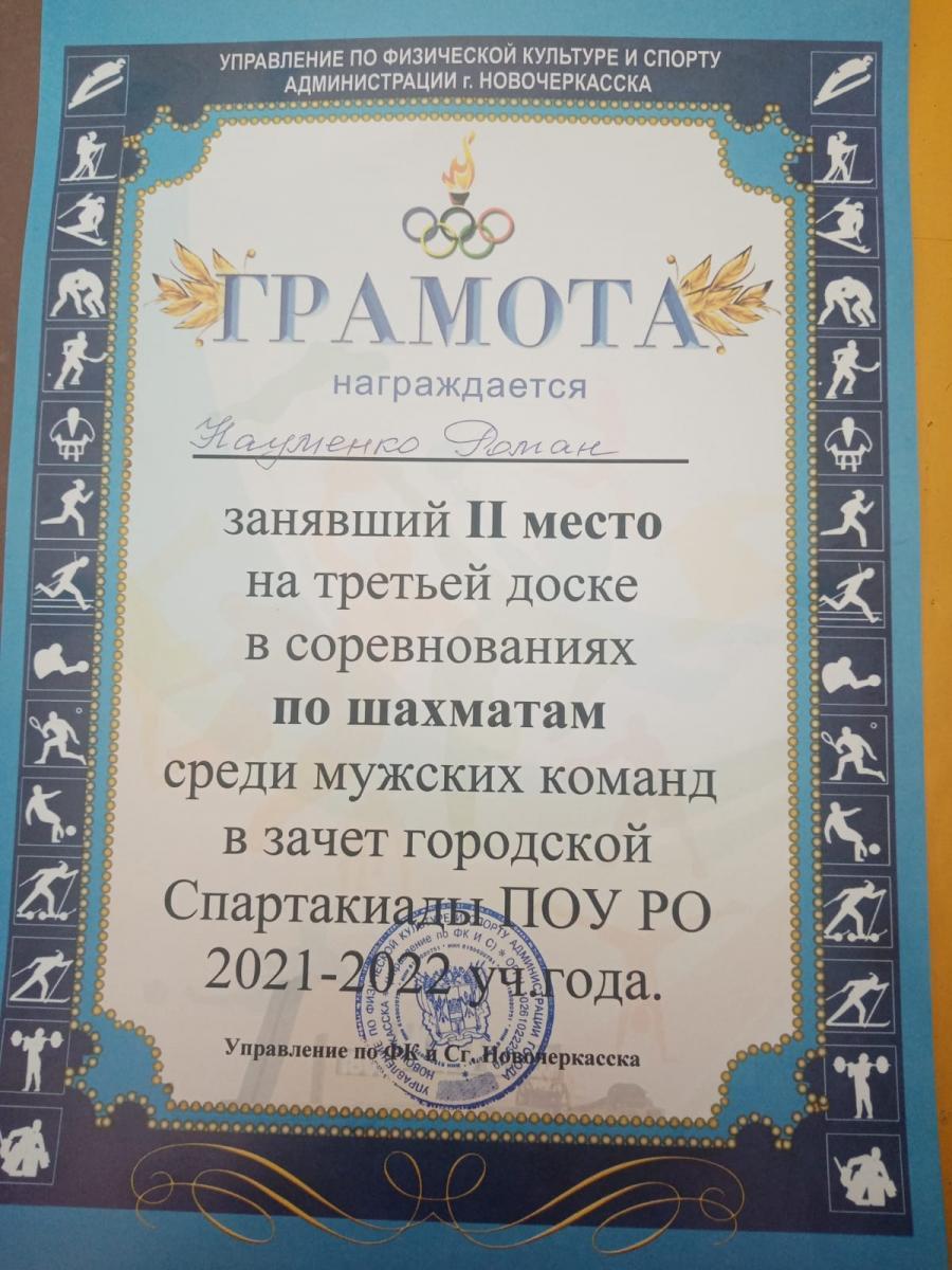 По результатам игр, 2 место  на третьей доске занял Роман Науменко студент группы ТК-31.
