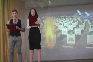 Студенты-первокурсники узнали историю праздника, прослушали стихи и песни, почтили минутой молчания память погибших в боях за Родину.