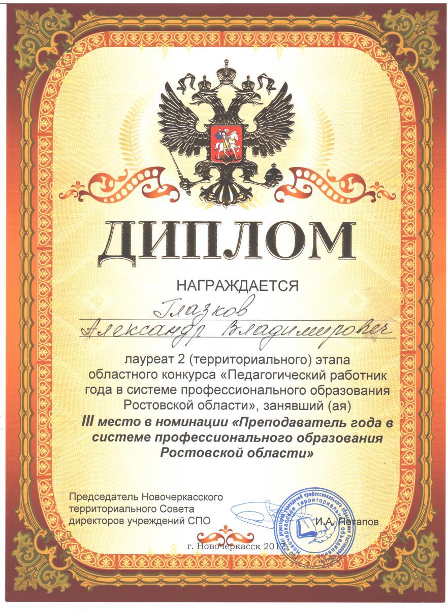 Глазков А.В., преподаватель специальных дисциплин нашего колледжа, занял III место.