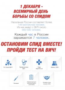 В 2021 году с 29 ноября по 1 декабря проходит IX Всероссийская информационно-просветительская акция «Стоп ВИЧ/СПИД», приуроченная к Всемирному дню борьбы со СПИДом. В связи с нестабильной эпидемиологической ситуацией, вызванной коронавирусной инфекцией, второй год подряд многие мероприятия акции проводятся в режиме онлайн. Новый формат позволяет расширить аудиторию участников за счет использования новейших цифровых технологий, помогает легко присоединиться к акции пользователям сети интернет из удаленных регионов нашей страны.