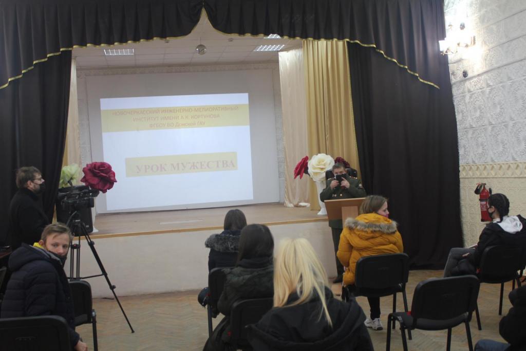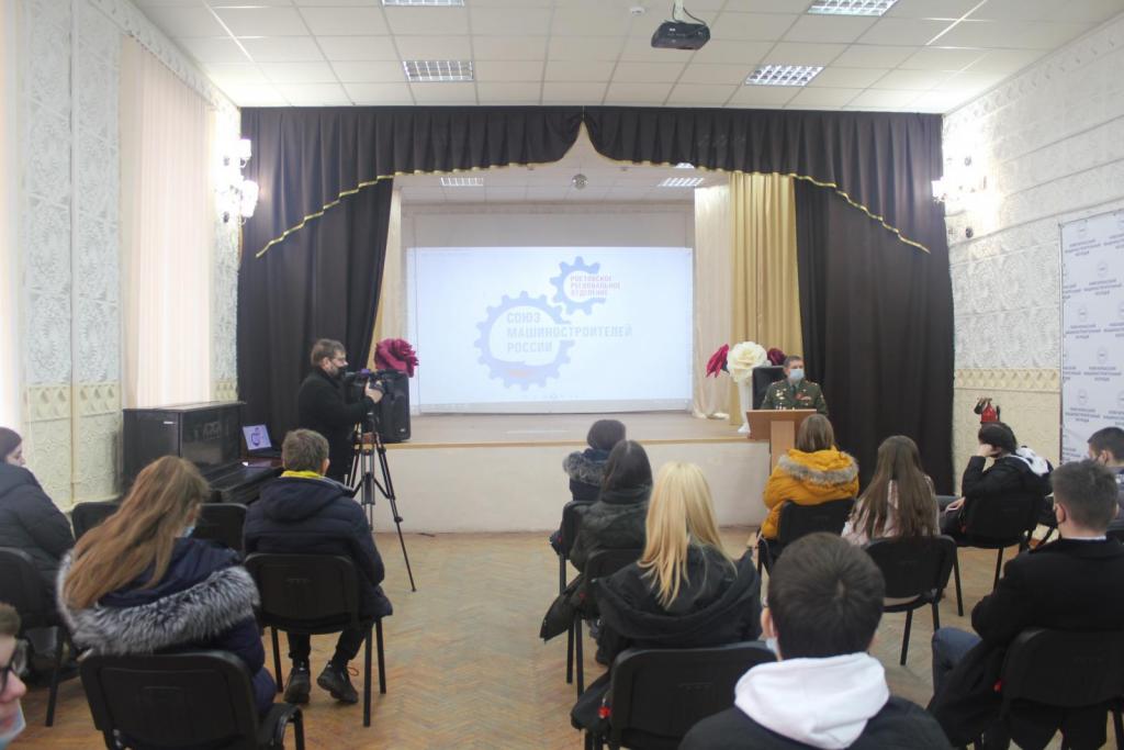 16 февраля в  Новочеркасском машиностроительном колледже член Союза машиностроителей России, председатель Новочеркасской городской общественной организации ветеранов Виктор Буров провел урок мужества. В ходе презентации он рассказал студентам 1 курса об освободителях Новочеркасска, акцентировал внимание на личностях фронтовиков - Почетных граждан нашего города Борисе Туманове и Иване Скоморохове, о вкладе оборонно-промышленных предприятий донского региона в Победу, о наиболее значимых патриотических мероприятиях Новочеркасского гарнизона и ветеранской организации.