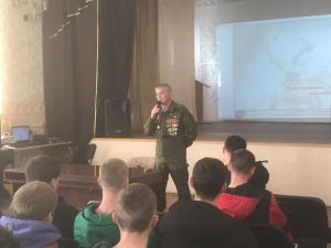 О примерах героизма и мужества различных поколений защитников Отечества, об оказании поддержки участникам специальной военной операции, а также мобилизованным военнослужащим, проходящим подготовку и боевое слаживание, о героизме и самопожертвовании и о подвигах военнослужащих Вооруженных Сил, рассказал студентам Олег Игнатьевич Миллер , заместитель председателя городского совета ветеранов, участник Афганских событий, Чеченской войны и ликвидации событий Чернобыля.
