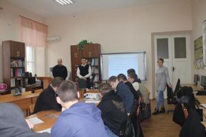 Заместитель директора по научной работе, заведующий кафедры Масленников С.А. провёл презентацию специальностей, а также рассказал о возможностях университетского пространства опорного вуза, о преимуществах инфраструктуры института, особенностях практико-ориентированного обучения.