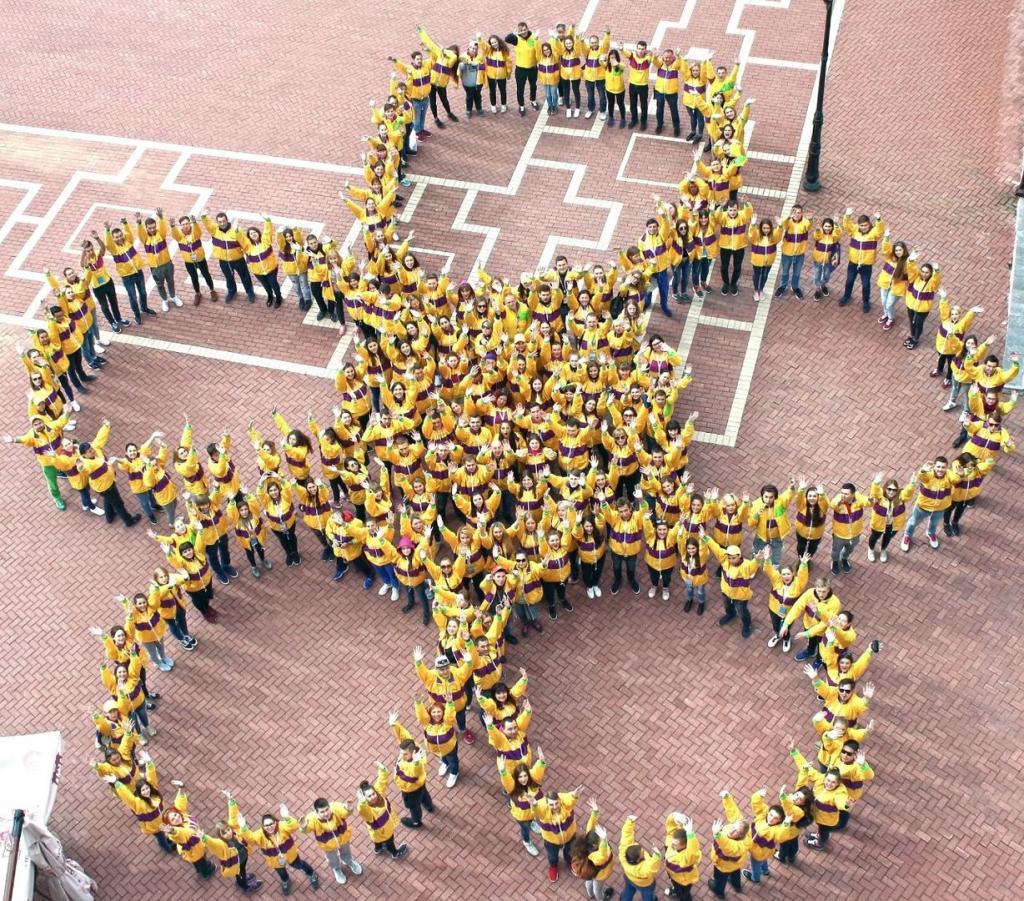 Молодёжная делегация Ростовской области, прощаясь, провела флешмоб, составив символ фестиваля – ромашку.