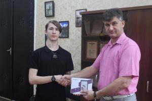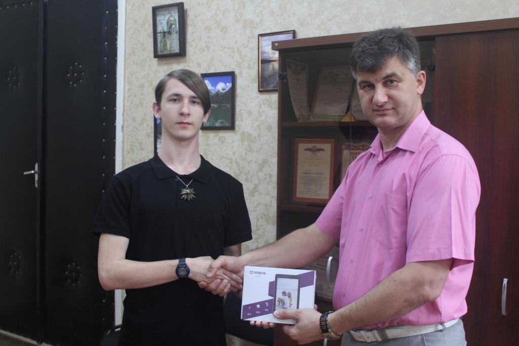 И сегодня от Министерства образования Ростовской области Алексею был вручен в подарок планшет, для помощи в учебе и для развития своих профессиональных навыков.