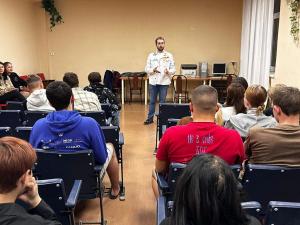 Представитель Штаба Студенческих Отрядов НИМИ рассказал студентам о том, как уберечь себя от заражения ВИЧ/СПИД, о симптомах данного заболевания и об анонимных организациях, которые готовы оказать помощь больным людям.