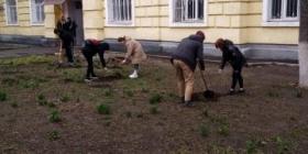 Перед зданием нашего общежития на проспекте Баклановском, студенты Новочеркасского машиностроительного колледжа сегодня посадили деревья, вишни, мини-груши и красивую, ароматную сирень.